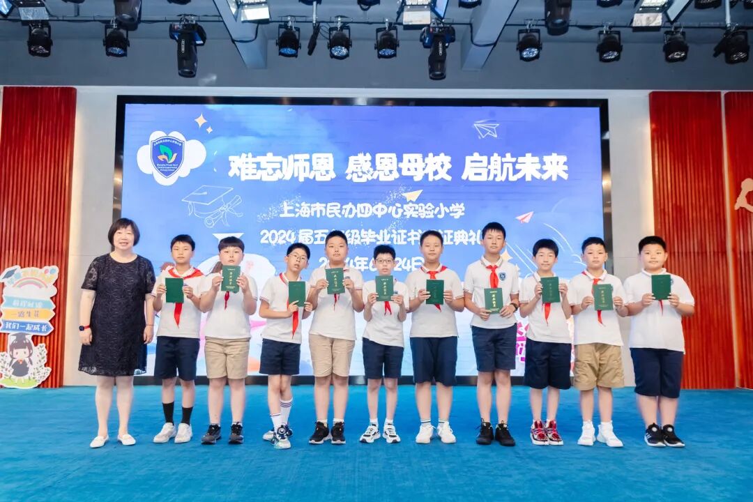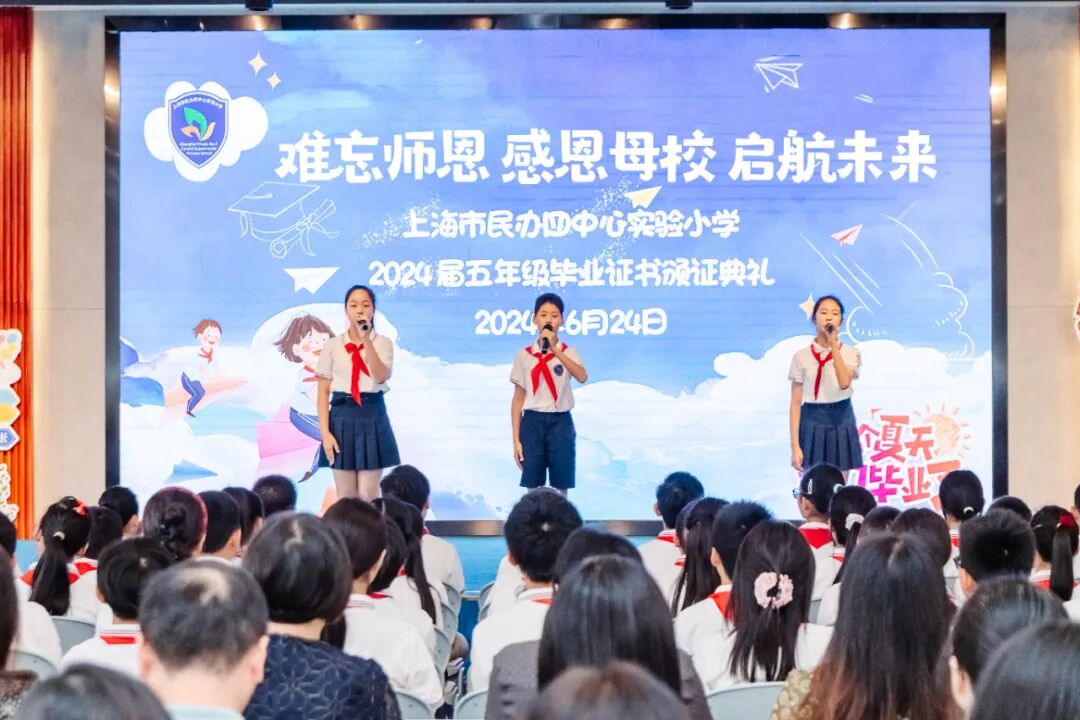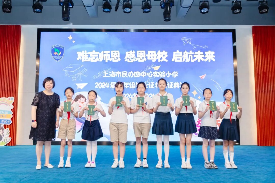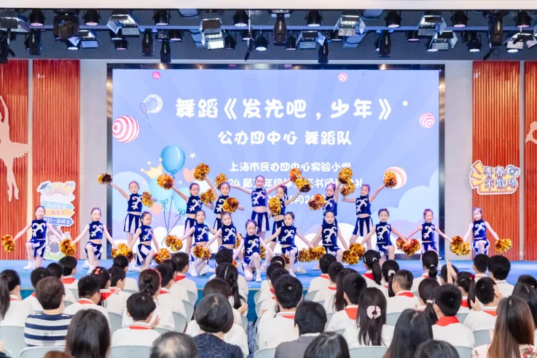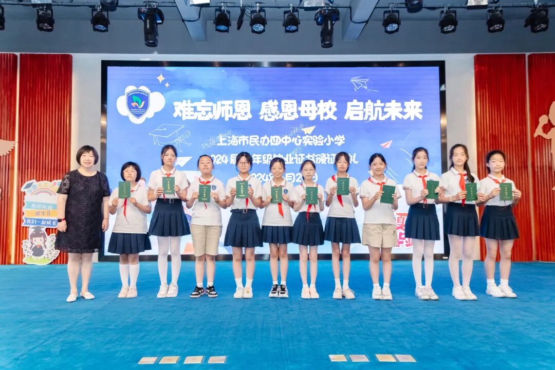 2024年6月24日,在学校礼堂举行了“难忘师恩 感恩母校 启航未来”为主题的2024届五年级毕业证书颁证典礼。学校领导,五年级全体师生,毕业生家长们欢聚一堂,虹口区第四中心小学的校舞蹈队也送来了祝福。