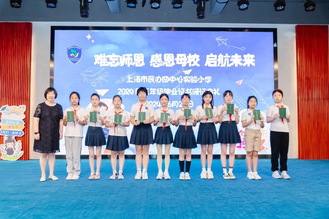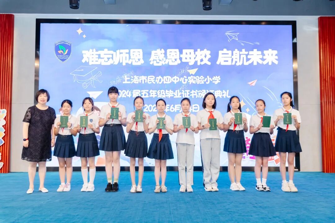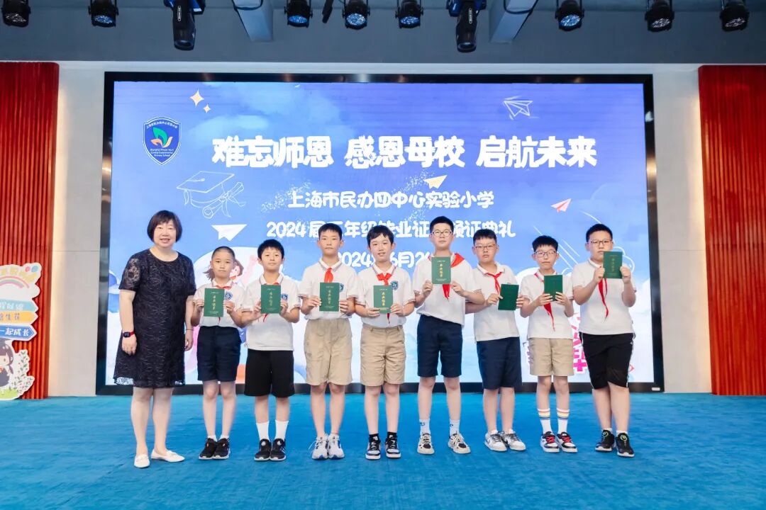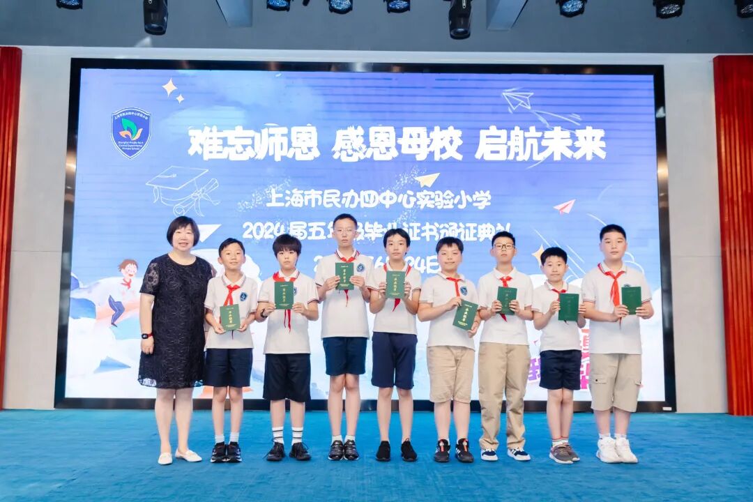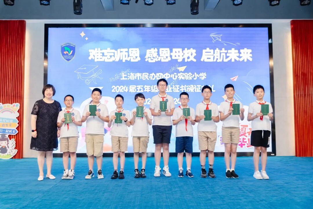 2024年6月24日,在学校礼堂举行了“难忘师恩 感恩母校 启航未来”为主题的2024届五年级毕业证书颁证典礼。学校领导,五年级全体师生,毕业生家长们欢聚一堂,虹口区第四中心小学的校舞蹈队也送来了祝福。
