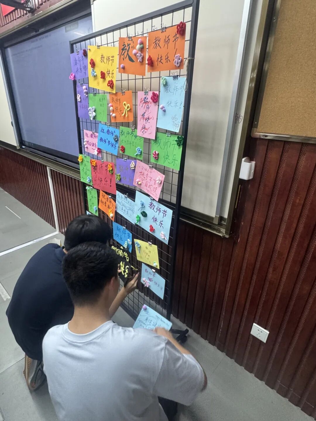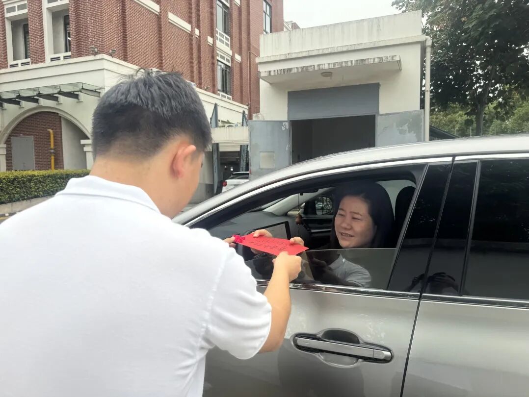 9月10日这份心意终于 “奔赴” 老师身边,西校区的校门口,团学干部们6:50便迎着第一缕晨光守候,手捧堆叠整齐的贺卡,笑着对每一位入校的老师道声“节日快乐”,东校区的课间也处处藏着小惊喜,学生干部们轻叩办公室门,将手作贺卡递到老师手中,让忙碌的教学间隙多了份猝不及防的温暖。