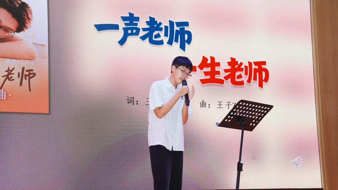 9月10日中午12:40,西校区报告厅的“午间音乐会”准时启幕,东校区演讲厅同步转播,让两校区师生共享这份温情。当最后一首《一声老师 一生老师》缓缓流淌,两个校区的师生隔空共鸣,简单的歌词里,藏着最沉甸甸的感谢。