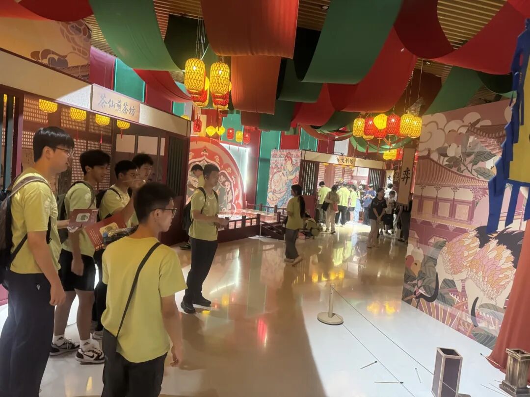 18日上午,科学营来到奉贤博物馆,“露华浓深 —— 大唐生活美学展” 让营员们仿佛踏入盛唐街巷。精致的茶具、华美的服饰诉说着时代的审美巅峰,复原的生活场景让他们感受到千年之前人们对美的追求与创造。