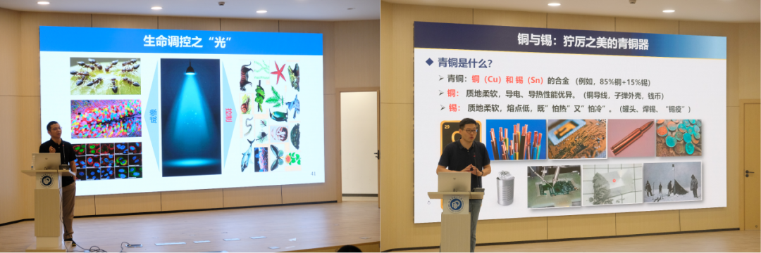 多位教授的讲解为学子们打开了科学之门,陈显军教授介绍的成像手段丰富多样,热成像能捕捉物体热量轮廓,X-射线可穿透物体显影内部结构,核磁共振成像则能无损呈现生理细节,它们在不同领域各有妙用。其中可见光成像独具魅力,包含光发射与吸收、化学发光、荧光等形式,光与物质的“互动游戏” 让营员们惊叹不已。戴升教授讲解的硅元素,在陶瓷领域独具魅力,从陶器到瓷器,硅元素的变化成就了穿越时空的东西方文化交流 “纽带”,让营员们对化学元素有了全新认知。