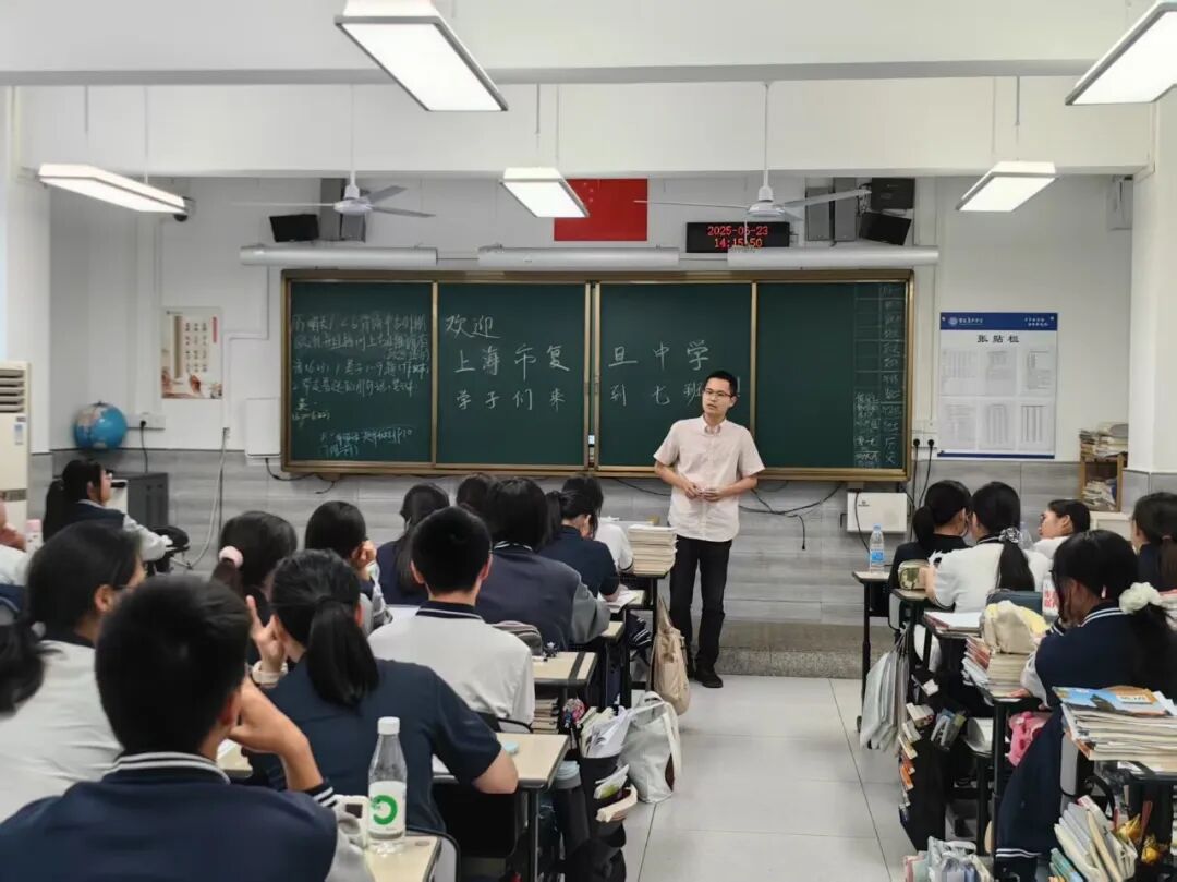上海师生在第二天走进重庆复旦高一的4个班级的课堂,与重庆复旦的同学们一同参与课程学习,深入体验重庆复旦中学的教学模式与课堂氛围。各班简短而又隆重的欢迎仪式、沪渝师生的积极互动都让上海的学生倍感温暖,印象深刻。