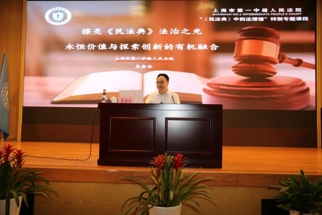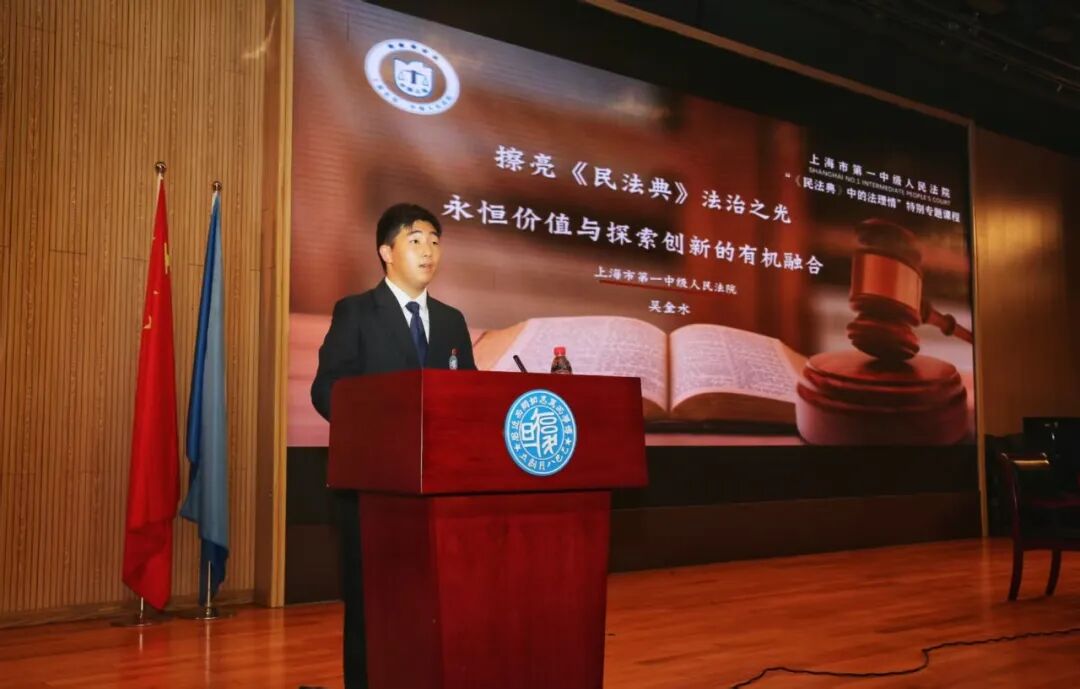 2025年5月31日下午,在《民法典》五周年纪念和第五个“民法典宣传月”到来之际,上海市复旦中学法治副校长、上海市第一中级人民法院的党组书记、院长吴金水再次来到复旦校园,开设了民法典中的法理情”特别专题课程——《擦亮〈民法典〉法治之光:永恒价值与探索创新的有机融合》。本次活动由高一2班朱屹杰同学主持,同步直播到各班教室。