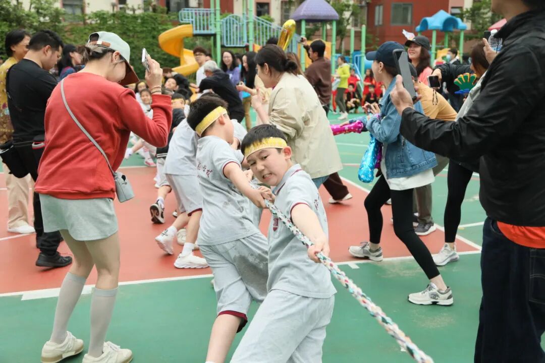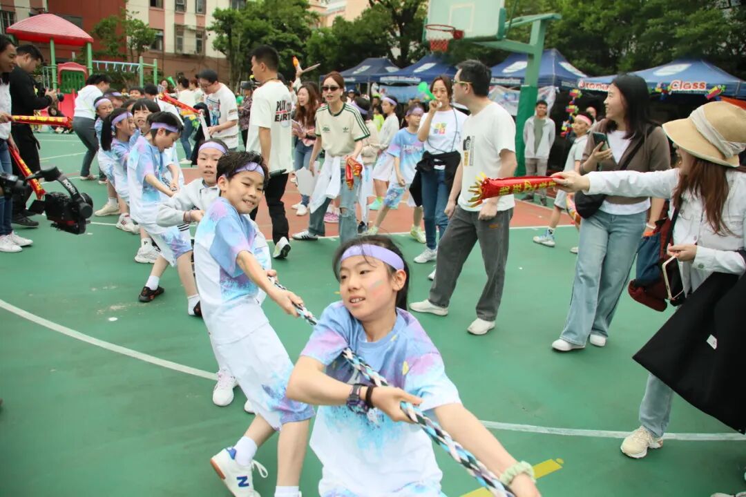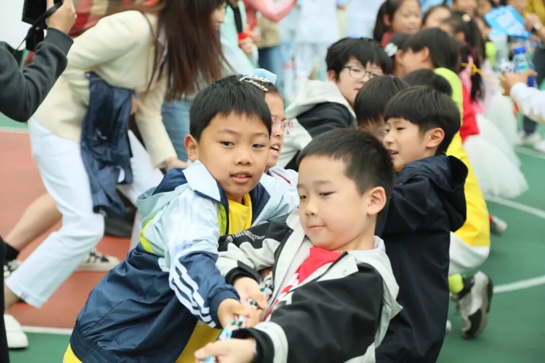 “人心齐,泰山移”,在拔河比赛中得到了完美的诠释。三、四、五年级的学生们握紧麻绳,脚踏实地,仿佛一座座坚固的堡垒。他们咬紧牙关,肌肉紧绷,狂热地握紧手中的绳索。胜利的一瞬间,仿佛整个世界都在为他们欢呼。