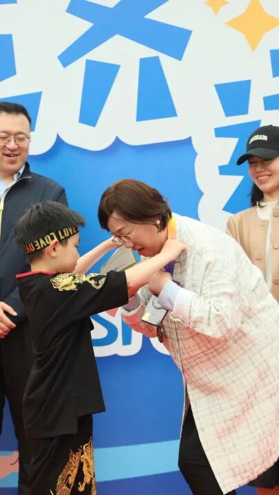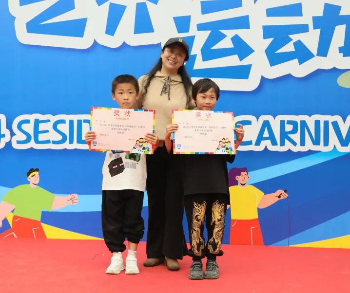 随后,瞿祖芳副校长为我们宣布活动开始并为本次嘉年华奖牌设计者一(1)班吕梓晗小朋友颁奖。
