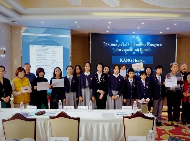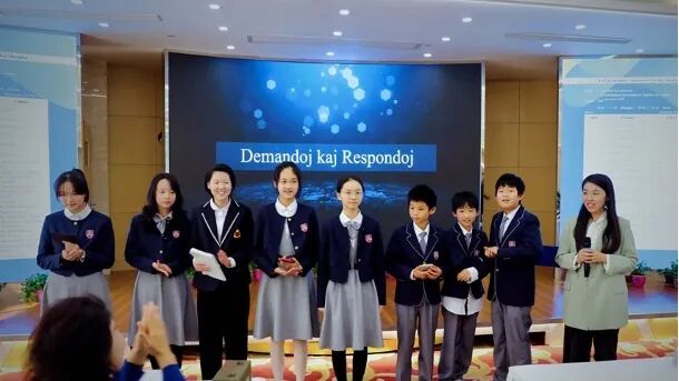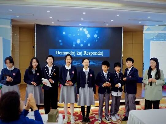During the Q & A session of the keynote speech, the two sides exchanged in-depth ideas on issues of interest. Ten teachers and students from Shanghai Experimental School International Department introduced themselves in Esperanto on the stage. The students also marked their painting and calligraphy works in Chinese, Esperanto, Korean and English, and presented them to the Korean guests, expressing the most friendly and sincere welcome. The seniors and experts present here also gave them high praise and sincere care.