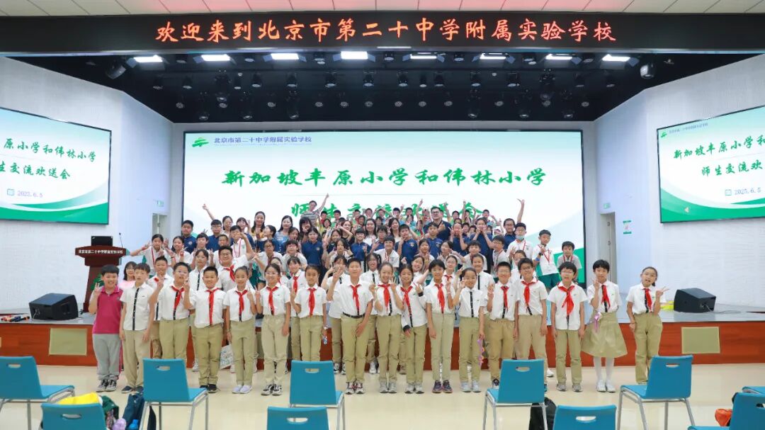 2025 年 6 月 3 日至 5 日,北京市第二十中学附属实验学校迎来了新加坡丰原小学与伟林小学的师生代表团,开启了为期三天的友好交流之旅。此次活动以 “文化互通、教育互鉴” 为主题,通过课程体验、文化互动和签约仪式等环节,搭建起中新两国青少年友好往来的桥梁。