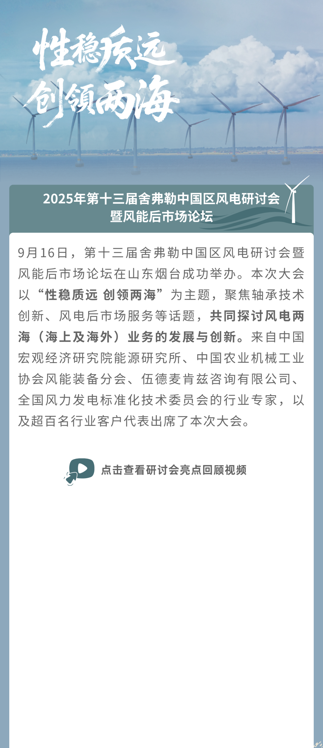 摘要:9月16日,第十三届舍弗勒中国区风电研讨会暨风能后市场论坛在山东烟台成功举办。大会以“性稳质远 创领两海”为主题,聚焦轴承技术创新、风电后市场服务等话题,共同探讨风电两海(海上及海外)业务的发展与创新。