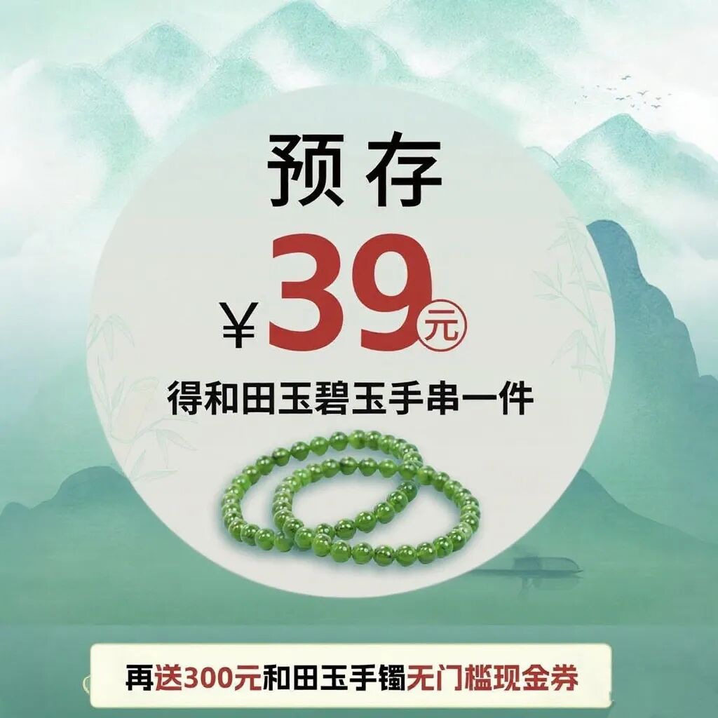 再送300元和田玉手镯无门槛现金券