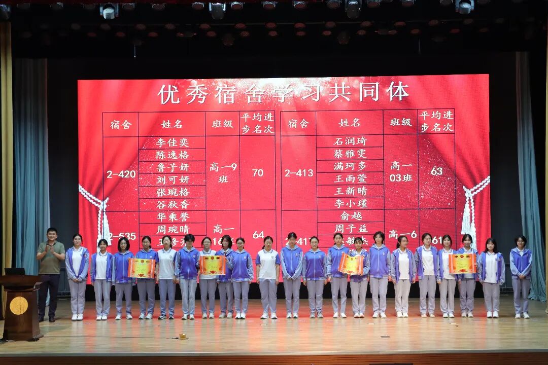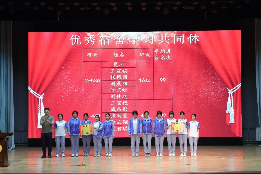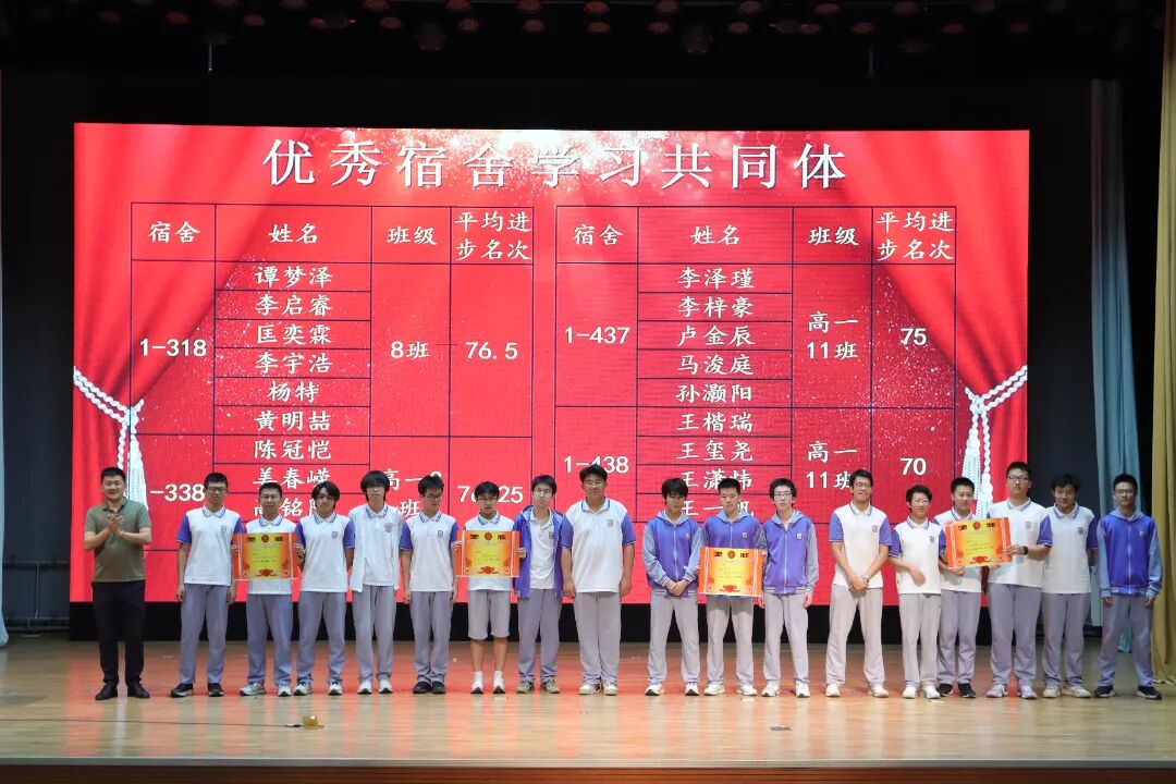 大会进行第二项,对优秀宿舍学习共同体进行表彰。获奖宿舍皆为在晚自习结束后的宿舍学习期间表现优异,共同奋进的集体。他们在此次期中考试中宿舍整体进步较大,展现了集体协作的智慧与力量,为同学们做好表率。姜龙方主任鼓励全体高一年级向他们学习,带动更多学子携手奋进,让宿舍成为思想交流的阵地、学业进步的摇篮。此次表彰不仅是对优秀宿舍的肯定,更激励着全体学生在集体中凝聚力量,共同书写青春奋斗新篇章。