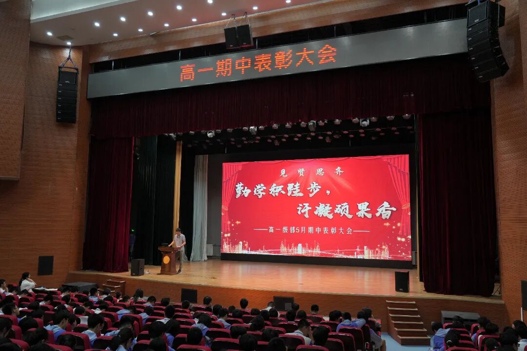 2025年5月22日,青岛九中高一年级在礼贤大讲堂召开了以“勤学积跬步,汗凝硕果香”为主题的高一级部5月期中表彰大会。本次活动由学生成长中心副主任邱纯凯主持,高一年级全体班主任老师和同学参加。