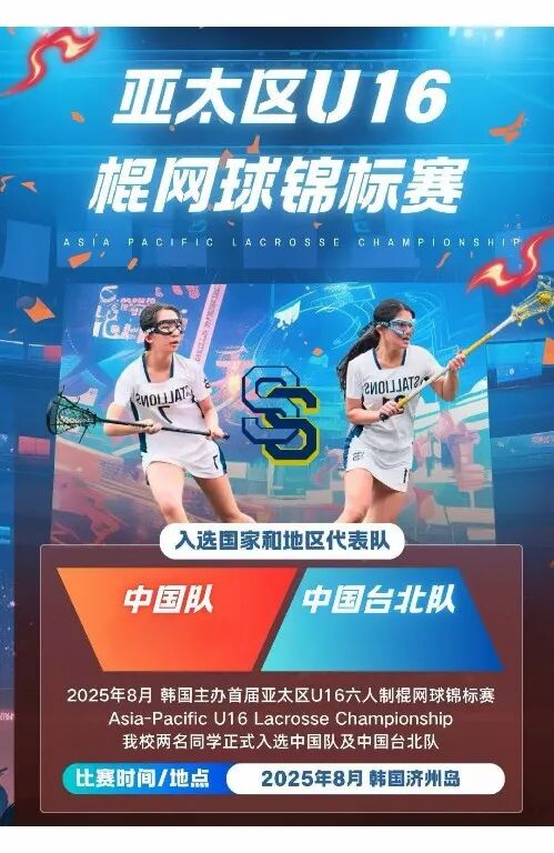 This August, the inaugural Asia-Pacific U16 Sixes Lacrosse Championship will kick off in South Korea. After rigorous selection, two of our 10th-grade students have stood out—one has been chosen for the Chinese U16 Women's National Team, while another has made the Chinese Taipei U16 Women's Team. We look forward to their outstanding performances on the stage!
