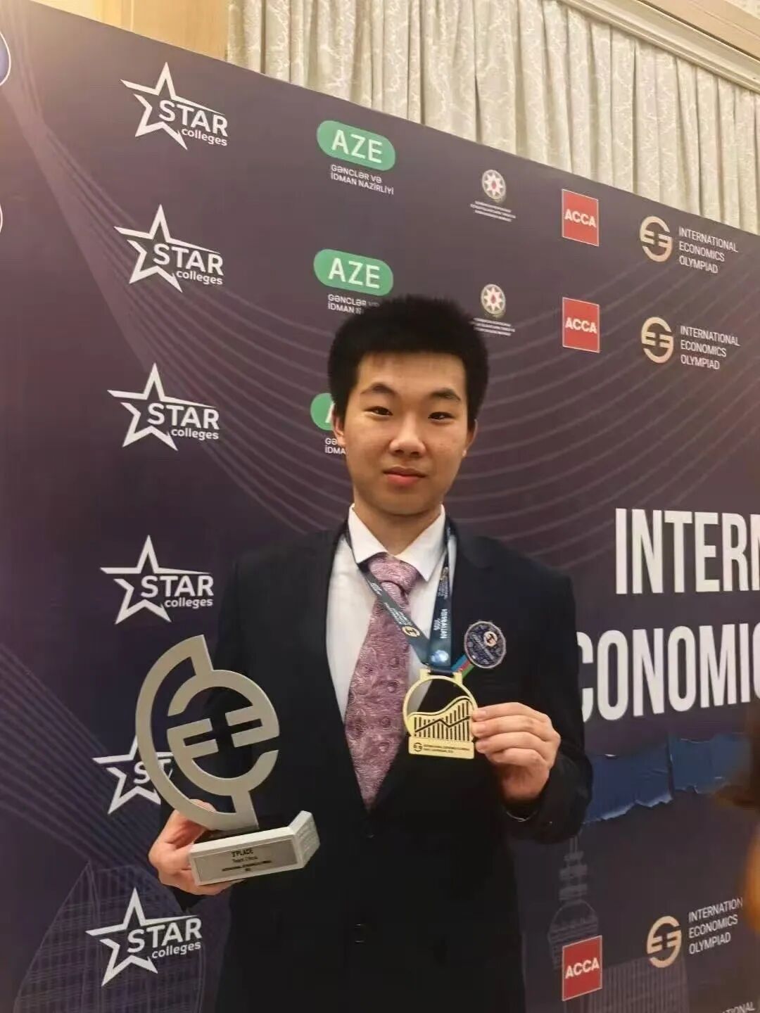 On July 28th, the 8th International Economics Olympiad (IEO) concluded in Azerbaijan. An 11th-grade student from our school, as a member of Team China, won an individual gold medal. In this year's competition, all five Chinese contestants achieved outstanding results, securing a total of 4 gold and 1 bronze medals. During the Business Case segment, our student demonstrated exceptional leadership by guiding the team in task allocation and problem analysis, contributing to a global 4th-place finish in this category. Additionally, Team China ranked 3rd overall in the total score, marking the best performance since the competition expanded to over 60 countries and regions in 2020.