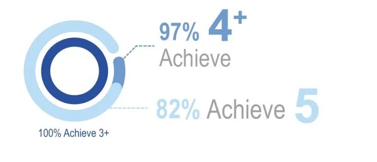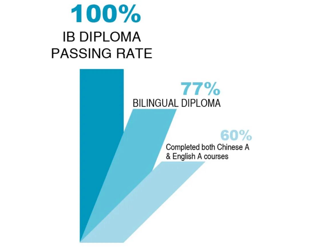 100%通过率:76名考生全员获得IBDP文凭,其中双语文凭占比77% [全球双语证书比率:27.3%] 。超过60%的学生选择英文和中文双母语课程组合。