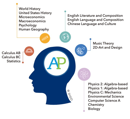 AP courses offered at SHSID include AP English Language, AP English Literature, AP World History, as well as AP Music, Art, Mathematics, Physics, Chemistry, Biology, Computer Science, and more, with an outstanding overall average score of 4.8 out of 5.