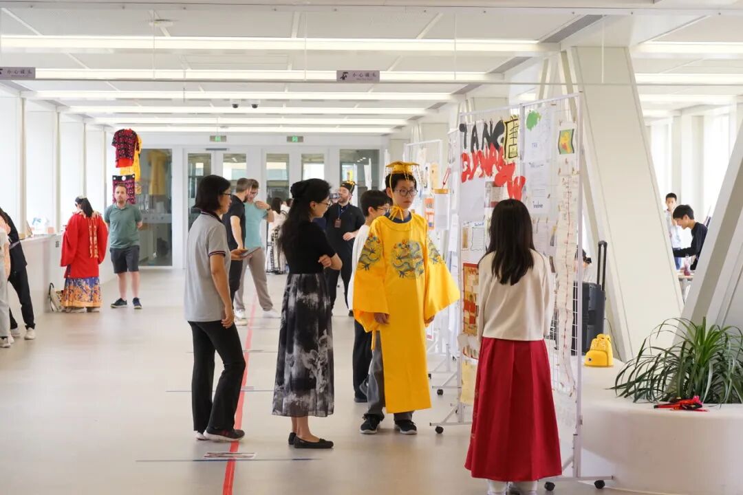 On the reverse side of each dynasty display screen, interactive activities organized by volunteers attracted many students. Participants could decode oracle bone scripts to trace the origins of the Chinese writing system, color terracotta warriors and equip them with replica weapons to restore the original appearance of the mysterious legion, create a Han Dynasty coin from clay, find Marco Polo in bustling streets, and play history-themed board games. Through these activities, students engage with Chinese civilization in an immersive experience.