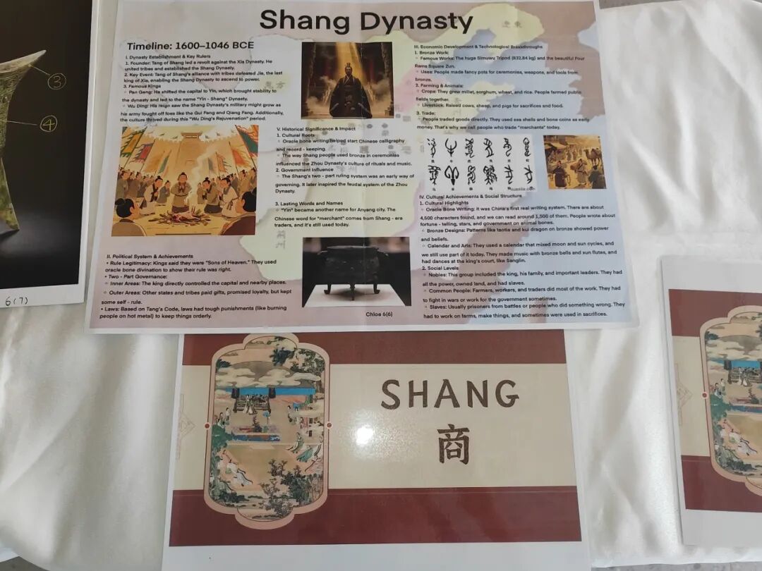 If you're fascinated by Chinese history, we invite you to visit the grade 6 history project showcase in the skywalk on the 4th floor. Let's sail together on the river of time, touch the warmth of Chinese civilization, and trace the origins of China's timeless legacy!