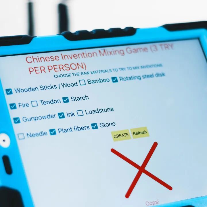 在每个朝代展板的另一边,每个班级的志愿者组织的活动也吸引了不少同学的参与。解读甲骨文了解汉字的历史,给兵马俑上色和配制武器还原神秘军团的最初面貌,用粘土制作一枚汉朝的钱币,在熙熙攘攘的街头寻找马可·波罗的身影,还有和历史知识问答相结合飞行棋、卡牌等桌游等等,让同学们在沉浸式的体验中触摸中华文明。