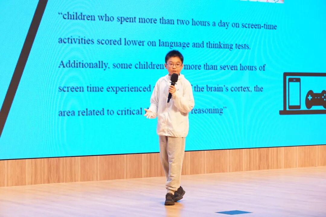 决赛现场,选手们的表现尤为亮眼。六年级的参赛主题围绕着如何从自身出发,提出个人见解。其中,S和S+级别的选手们聚焦于如何通过外部干预(如限制屏幕时间和奖励制度)引导孩子形成更健康的生活习惯和学习态度,强调了父母在孩子成长过程中作为规则制定者和激励提供者的角色的重要性。而H和H+级别的选手则利用科学研究支持各自的主题,比如公共交通和电子游戏的好处,并倡导遵循适度原则来促进个人发展和社会福祉。