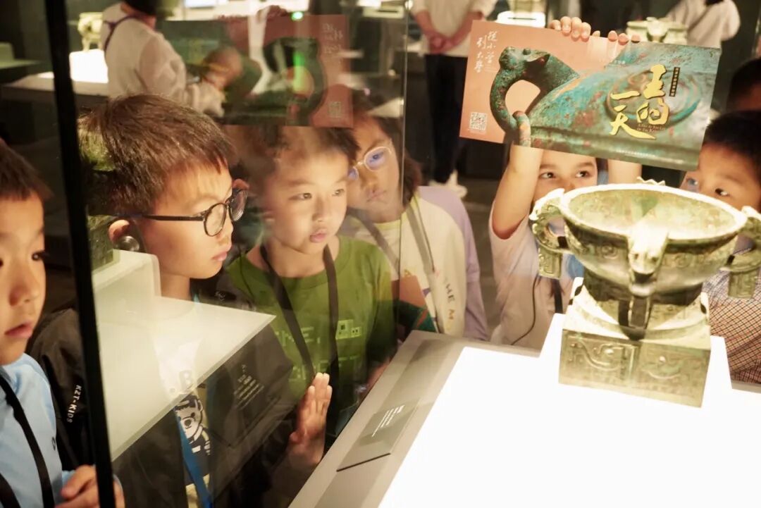 学校为每个班级都配备了一名专业讲解员,他们就像一把把钥匙,为学生们打开古代文明的大门。在讲解员的带领下,同学们仿佛穿越时空,回到了古代,以汉字为切入点,透过一件件精美的青铜器,深度体验古代君王一天的生活。