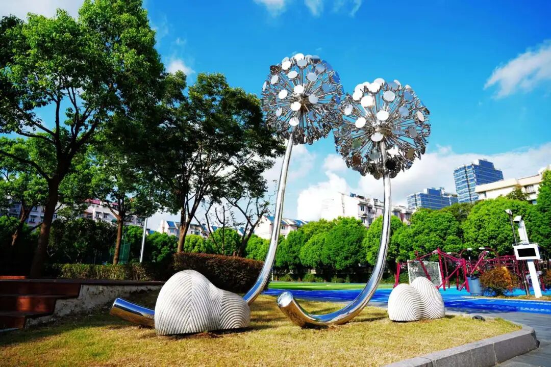 步入校园,门口两株晶莹的大蒲公英象征着心愿启航,静静守护每一个纯真的梦想;