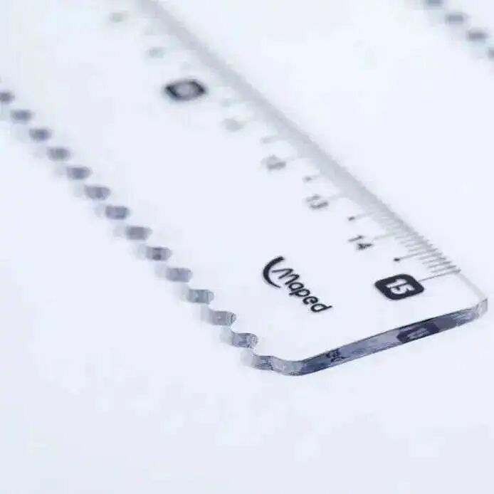 透明无图案,无镂空圆洞,一面能划波浪线(15cm、20cm)。