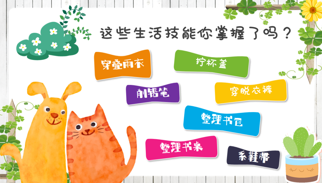 如果你还有不会的生活技能,不着急,来看看哥哥姐姐是如何整理书包的,请你每天练习1-2次,希望能在3分钟内把自己的书包整理完毕哦,加油!
