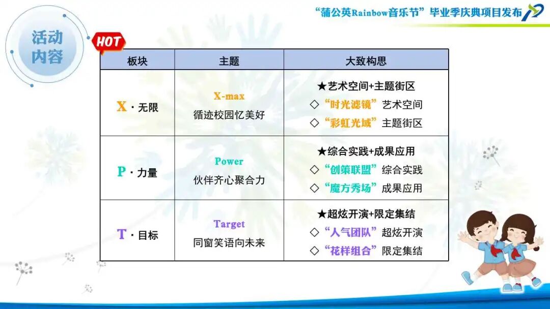 小议员们在思辨后提出期待:“我们的毕业歌”源自于“一米视角”的智慧火花,希望得到学校的回复。令大家惊喜的是,景老师即刻发布了《蒲公英Rainbow音乐节》毕业季庆典项目策划案。孩子们亲身经历了提案讨论到项目启动的全过程,真正实现了“红领巾”议事效能的最大化。