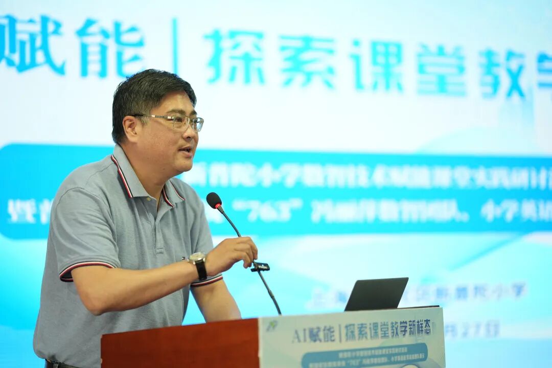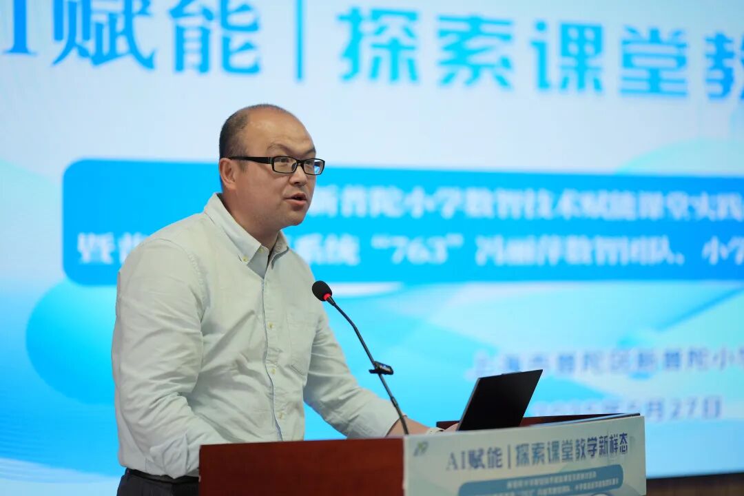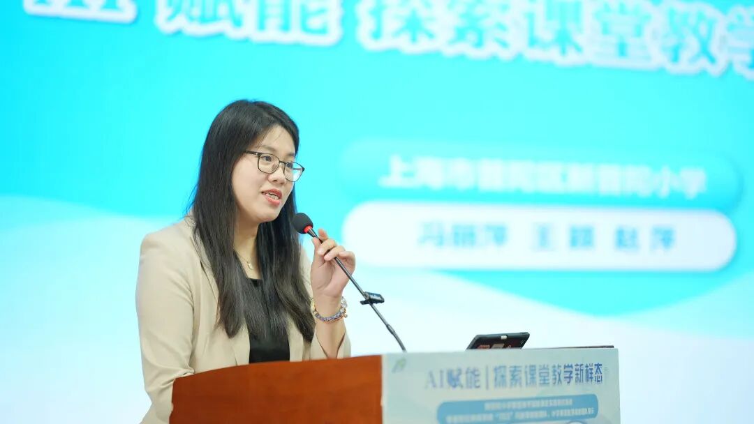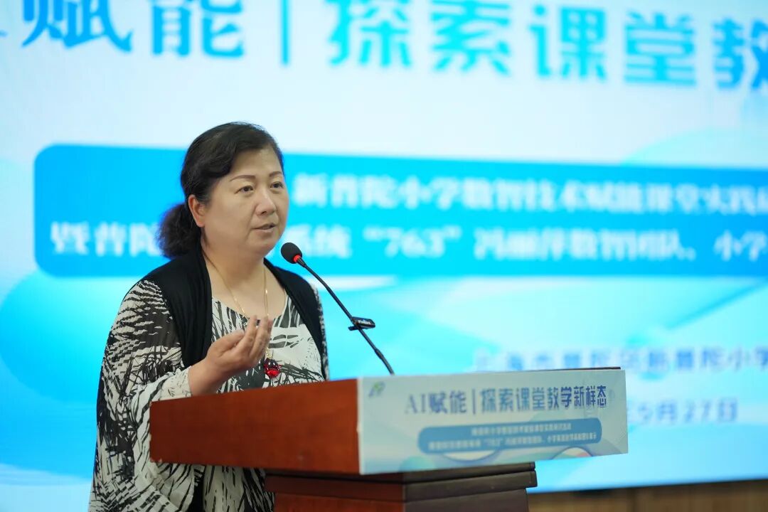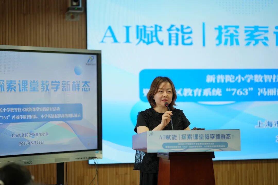 在数字化转型背景下,新普陀小学党支部副书记、普陀区“763”数智团队领衔人冯丽萍携课程中心副主任、小学英语高级指导教师赵萍、数学教研组长王颖,以《AI赋能 探索课堂教学新样态》为题,系统展示了学校在人工智能与课堂教学深度融合中的创新实践与思考。