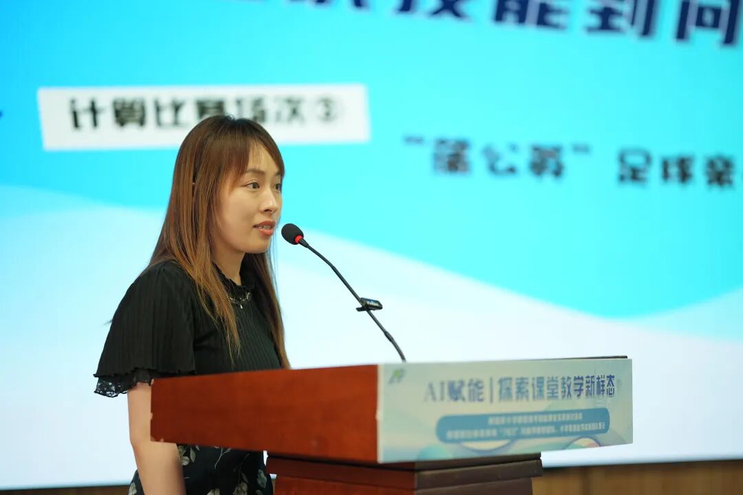 教育技术研究室主任兼信息科技教研员王世达以阿玛拉定律引入,指出当下应正确认识AI技术潜力,强调要培养驾驭AI的人。数智赋能背景下,教师应具备用提示词拆解问题的能力,从知识传授者转变为问题解构者,训练学生批判创新、不断建构的高级思维能力。