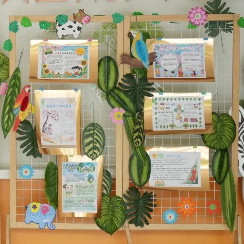 走廊上,一本本安全绘本“长”成了童话墙报,