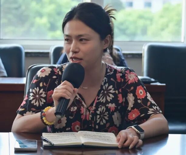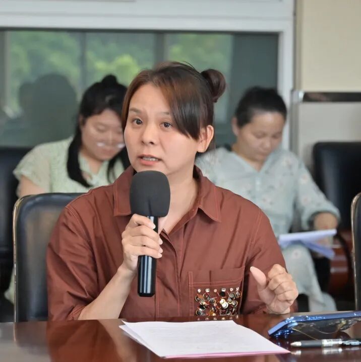 新初三物理备课组长周玲发表了《精准施策,破局前行》的发言,她针对物理学科学情上两极分化严重、九年级上学期学科内容难度大这两大困难提出了具体可实施的方案——明确目标,精准施策;团结协作,共克时艰;关注个体,因材施教。