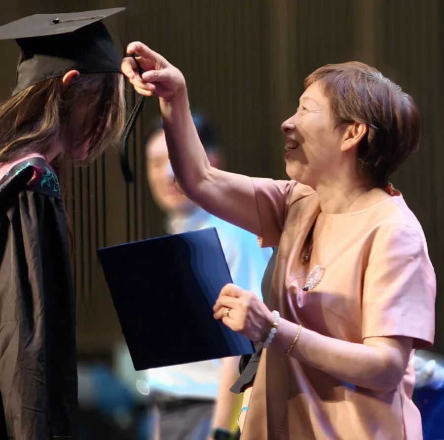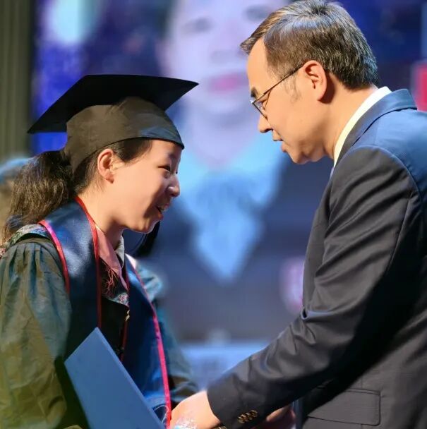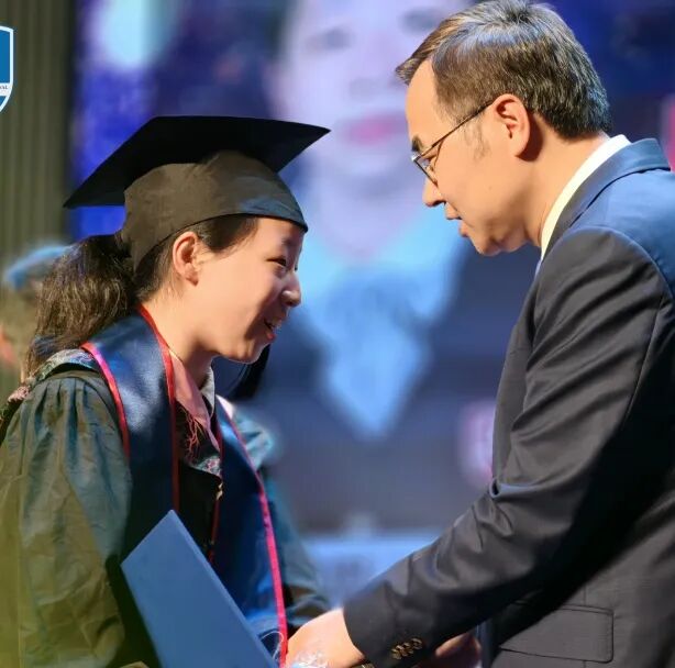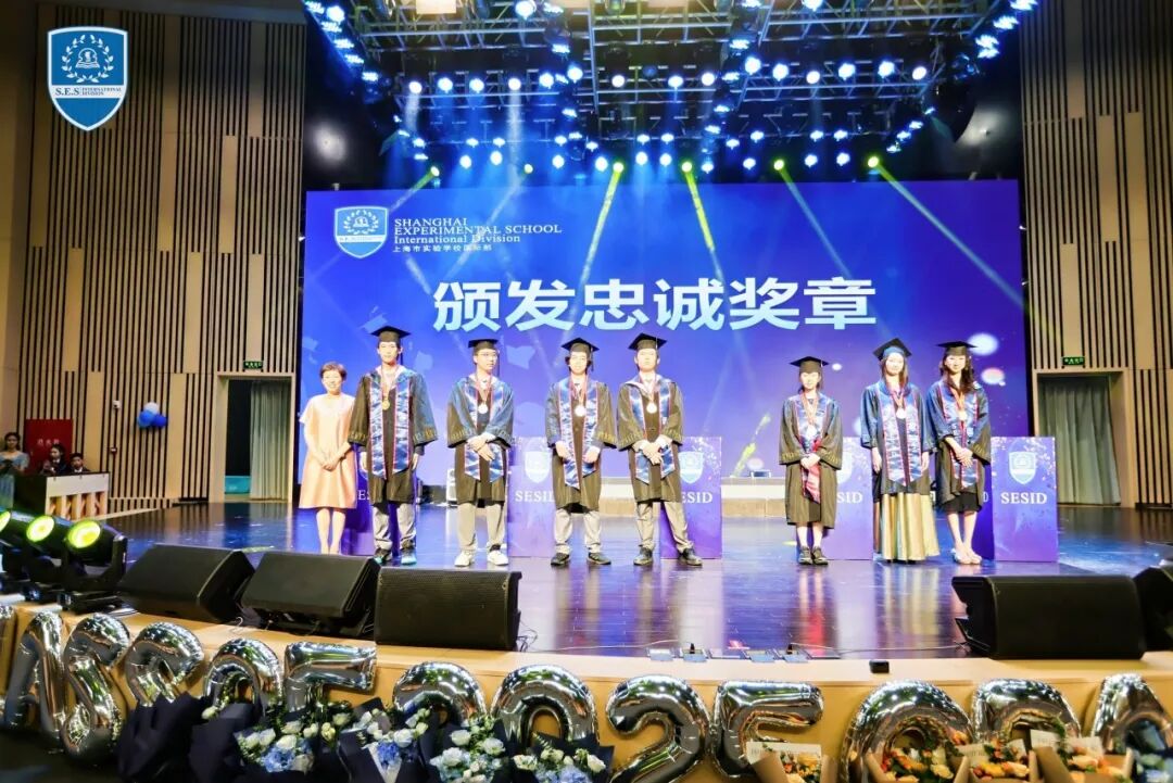 值得一提的是,校方还特别为那些自小学一年级起便在上实国际部就读、至今已整整十一年的高中毕业生准备了“忠诚奖牌”。他们自2014年起走进上实校园,十一年未曾离开,是上实人“攀登”精神最真实、最完整的体现。在掌声中,徐红校长为学生授牌,学生也从校长手中接过了属于坚持与忠诚的荣光。