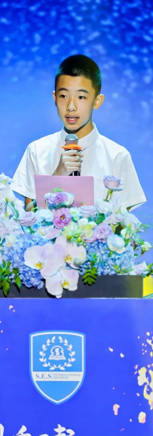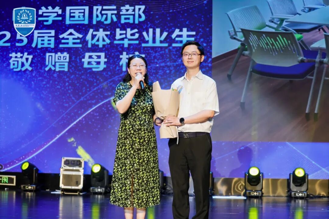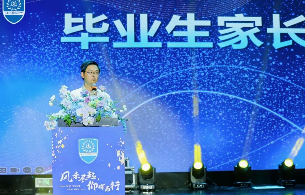 Mr. Chen Hui, Deputy Secretary of Party Committee, delivered a heartfelt speech to the graduates, offering warm congratulations and sincere blessings. He expressed his gratitude to the parents for their support and trust, reviewed the growth trajectory of the graduates as they groped forward, made bold attempts, and explored and practiced together with their teachers. He encouraged all students to carry forward the spirit of this year’s theme, "Grow with Strength, Glow with Love," and with the courage, character, and vision they have developed at SES, paint a more wonderful life story on the world stage.