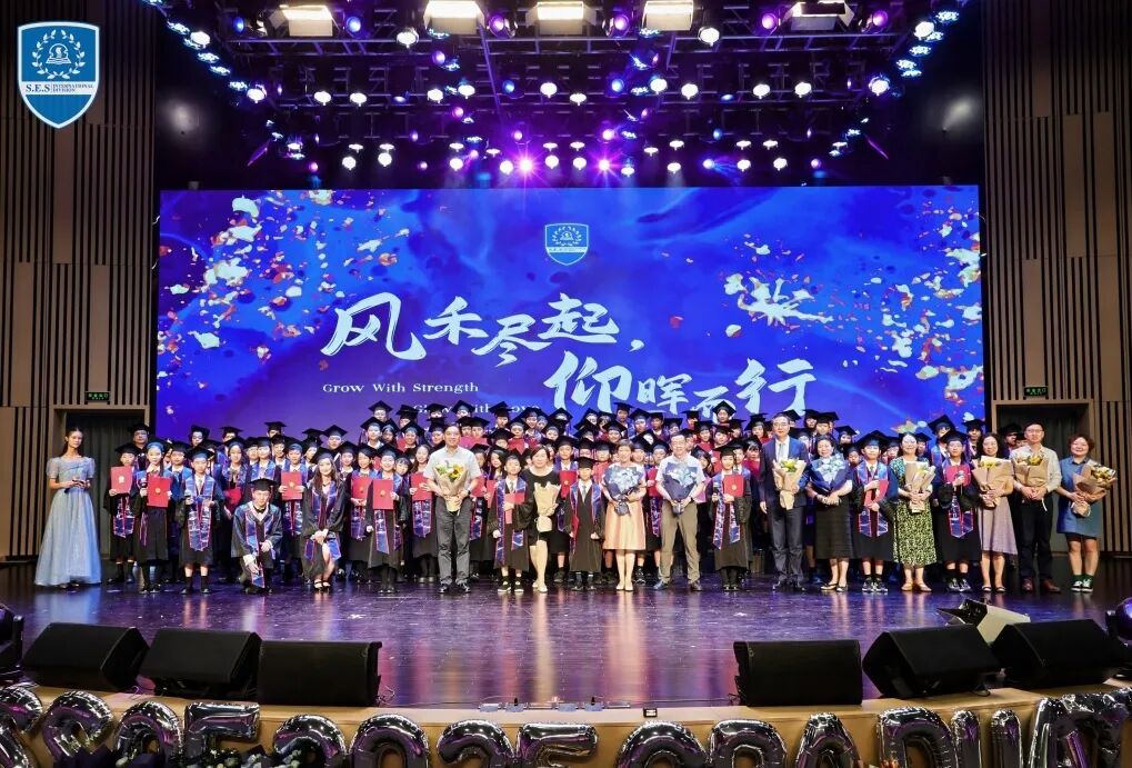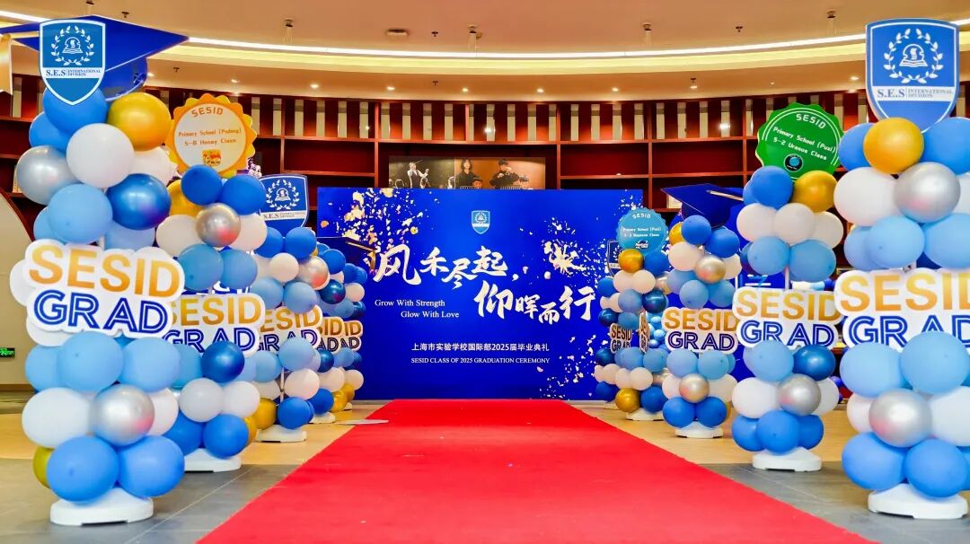 As cicadas sing and a new journey begins, on the morning of June 26th, Shanghai Experimental School International Division celebrated its Class of 2025 Graduation Ceremony under the theme of “Grow with Strength, Glow with Love”. A total of 113 graduates from Puxi, Pudong Primary School Campus, and Secondary School Campus, walked on the red carpet in formal attire, bidding farewell to their childhood and youth amidst flowers and applause, and stepping confidently into a new chapter of life.