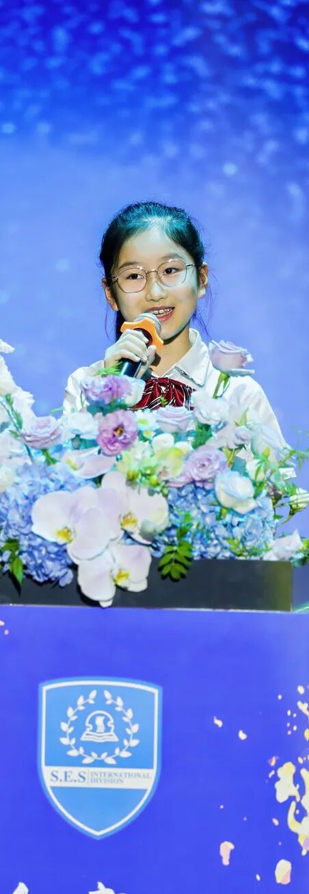 Student representatives from all three campuses then took the stage: Gu Peiyan from Puxi Campus Class 5-1, Hu Xing’er from Pudong Campus Class 5A, and Yang Yichen from the Secondary School Campus Class 11A. They reflected on their growth, expressed heartfelt gratitude to the school, and shared hopes for the future, earning rounds of enthusiastic applause from the audience.