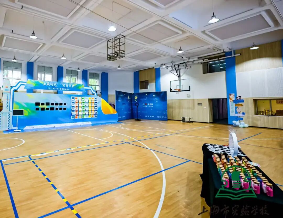 下午,小学部体育馆沉浸在一片蓝色的海洋中。2021级结业生手持定制流沙瓶,将刻有自己名字的彩色细沙缓缓注入SES时光容器。沙粒坠落的光影中,四年光阴被具象为流动的星河。