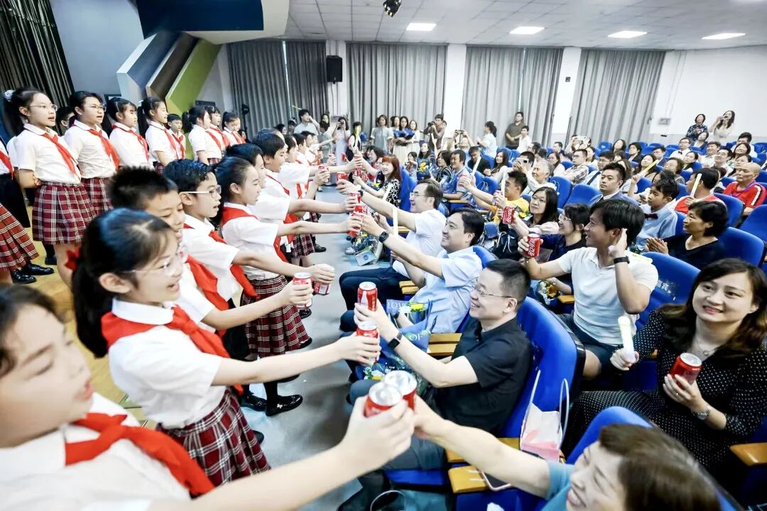 结业典礼尾声,75个孩子高举可乐和荧光棒与老师们家长们共同举杯,这杯成长的“酒”,