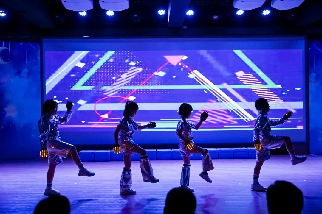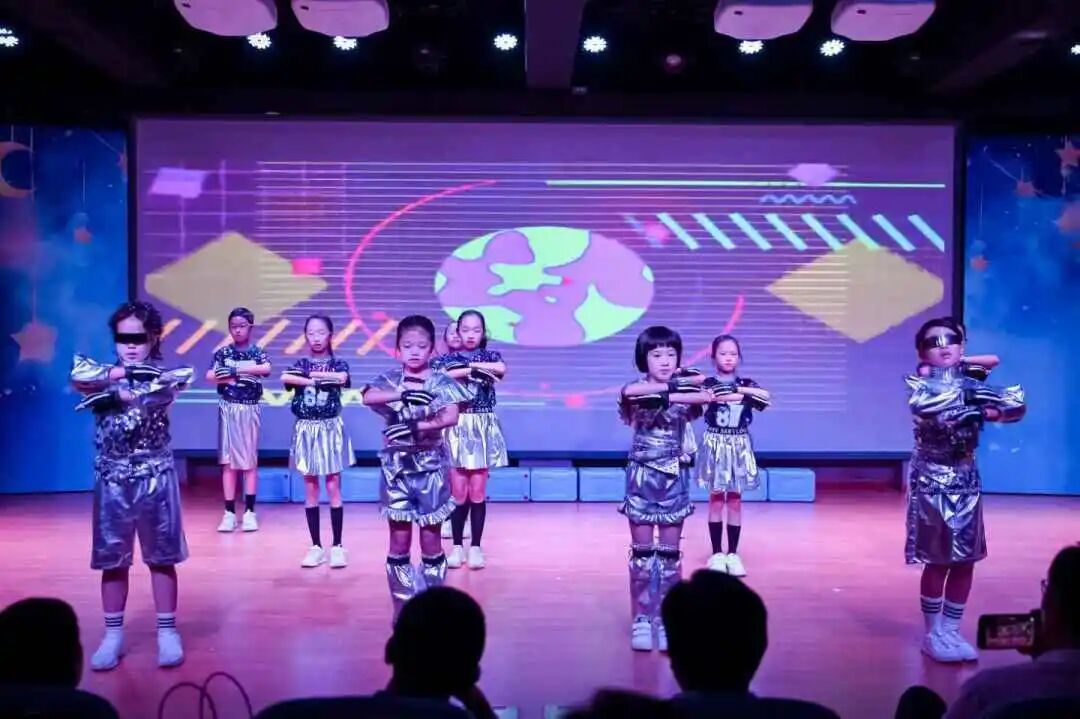 家长们以沙画表演《不同年代的求学时光》回应这份纯真,从80年代的跳皮筋到00年代的无人机操控,时代在变,父母之爱始终是孩子成长的“活课本”。紧随其后的一波《成长Disco》彰显出10后们的个性风采。