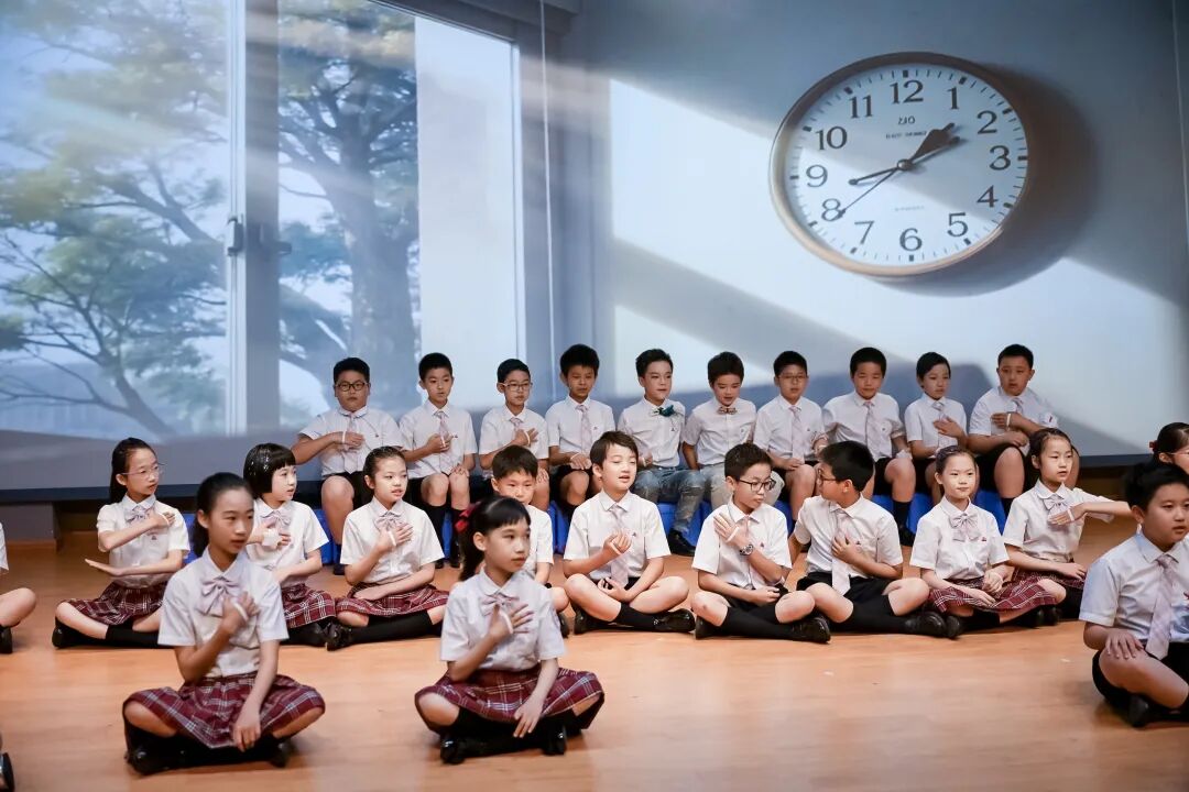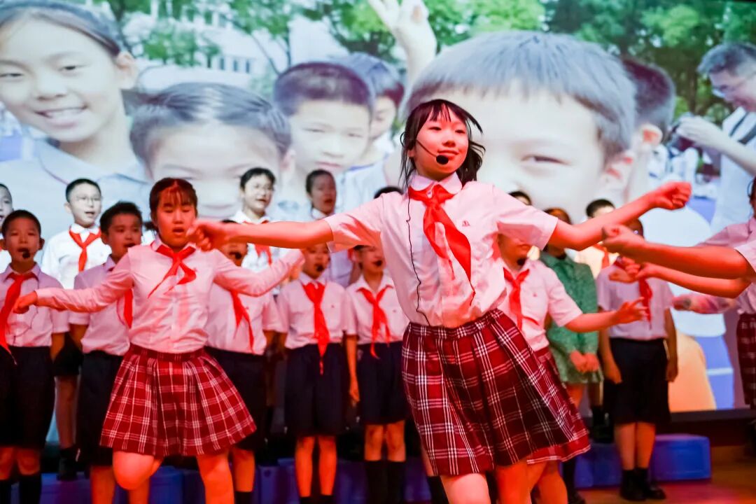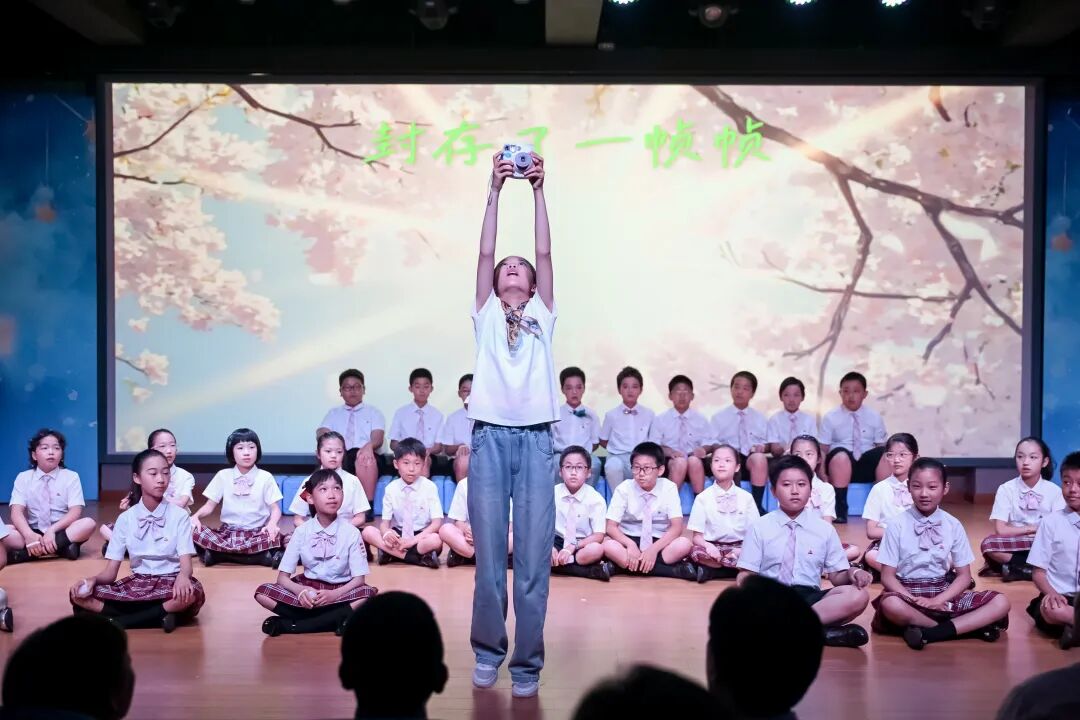 四(1)班的《梦想在樱花树下徜徉》让花瓣纷飞成记忆的注脚,悠扬童声里流淌着校门前樱花树年复一年的盛放;四(2)班以《上实四载,逐梦时光》的朗诵与舞姿,带我们穿越教室书声、操场欢笑,每个跃动的身影都是时光长河里不灭的星。