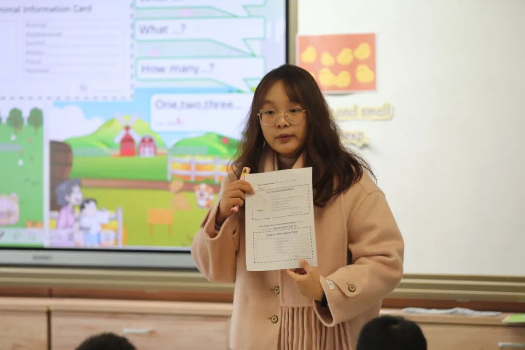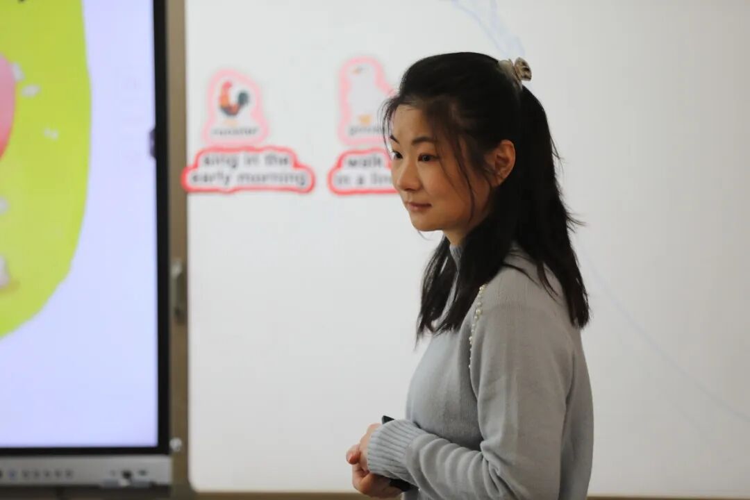 陆晓笑和王冰莹两位老师围绕“On the farm”这一主题,展现了不同的教学风格,为学生带来了别开生面的课堂体验。陆老师以农场参观为情境,结合丰富的肢体语言和多样化的朗读、句型训练,让学生在轻松愉快的氛围中掌握新单词、新句型,实现良好的教学效果。