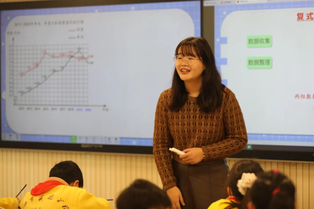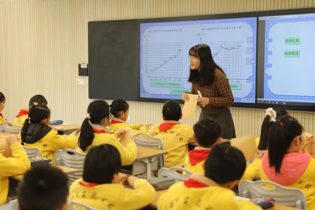 沈飘飘老师和赵璐懿老师以“复式折线统计图”为主题,通过“选购手机”这一贴近学生真实生活的话题,引导学生从单式折线统计图过渡到复式折线统计图,在探索中培养了学生运用数据进行分析和表达的能力,同时引导学生深入探讨数据背后的故事和趋势变化,从而有效地将学科德育融入教学之中。