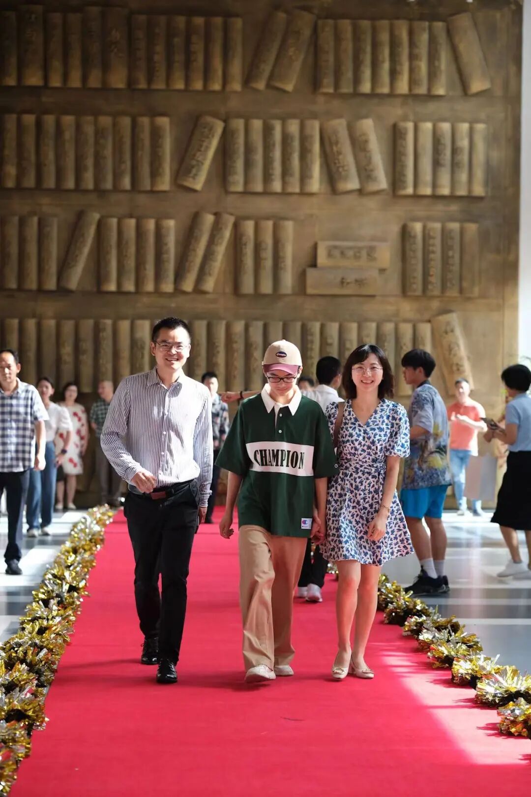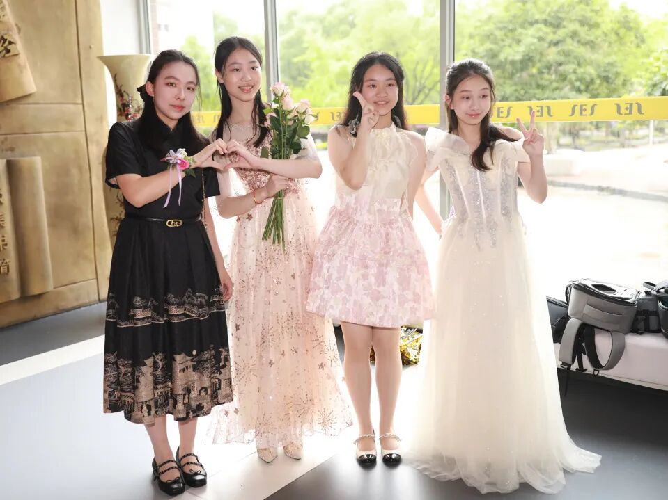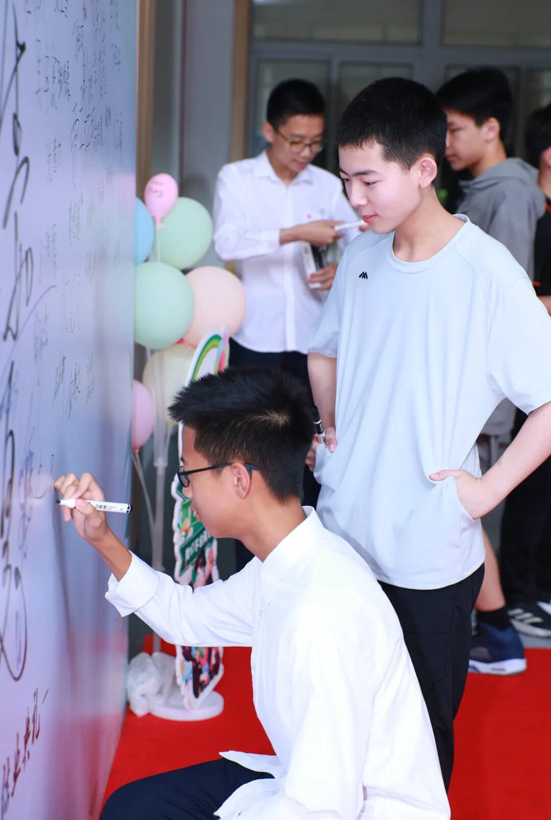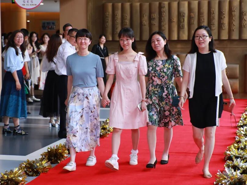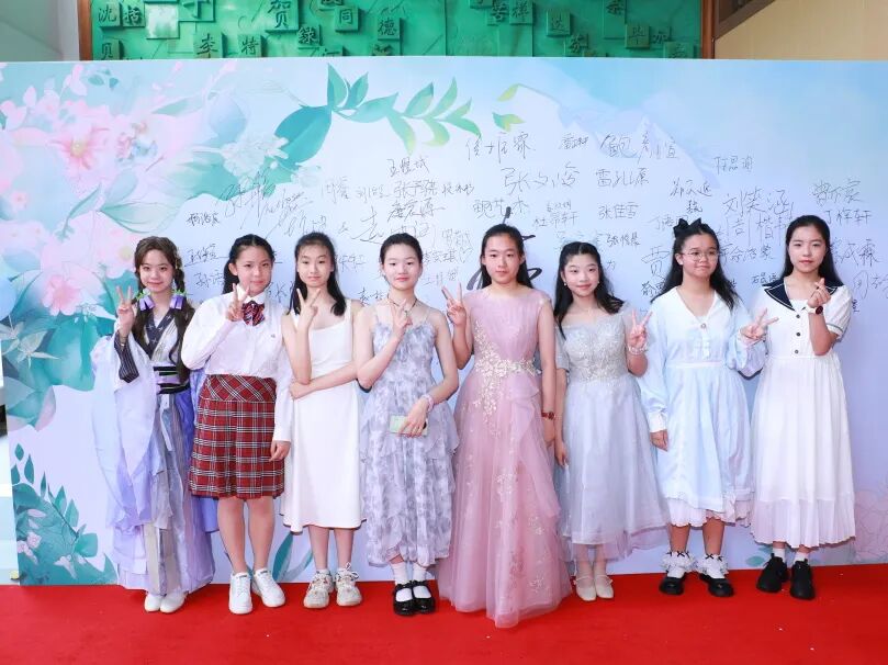 典礼开始前,“一路生花”红毯秀在文化墙大厅拉开序幕,同学们邀请老师、家长、伙伴们一同走上红毯,并在主题展板上签下自己的名字,以最灿烂的笑容,留下青春最耀眼的记忆。