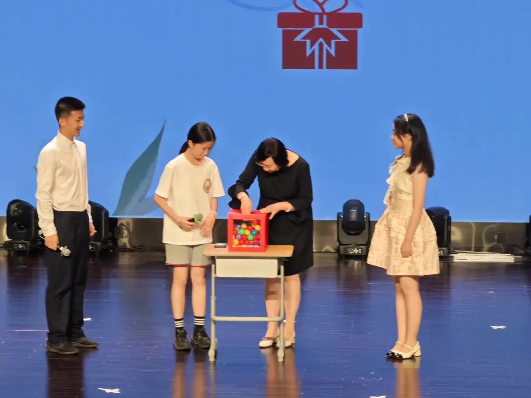 本次主题词的揭晓采用了创新的形式,通过魔方绘画的展示,《双面魔画》将本次典礼的主题凝结成一个作品,定格为永恒的留存。主题词揭晓后,徐红校长上台致辞。她通过分享SES今年两位特殊毕业生的故事,鼓励各位同学不畏将来,不念过往,勇敢地追求自己的梦想与热爱