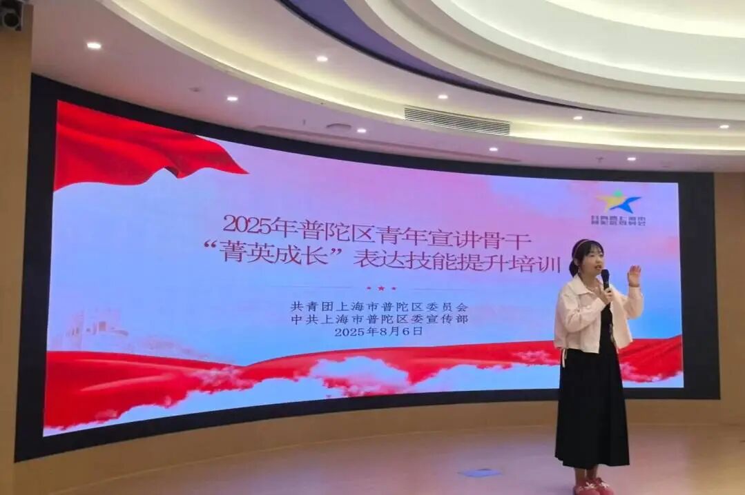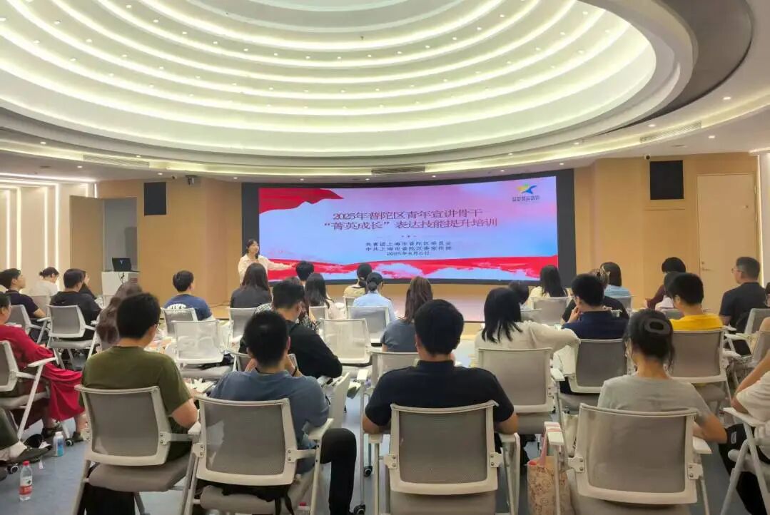 为深入学习贯彻习近平总书记重要讲话和重要回信精神,进一步提升青年宣讲骨干的理论水平和表达能力,8月6日下午,由中共普陀区委宣传部、普陀团区委联合主办的2025年普陀区青年宣讲骨干“菁英成长”表达技能提升培训成功举办。来自全区各领域的青年讲师团、青年突击队成员齐聚一堂,在专业导师的指导下,解锁宣讲新技能,点燃青春“声”力量。