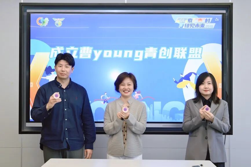 街道办事处副主任张璐瑶与上海市地震局团总支书记陈子琳、上海市测绘院团委副书记王金阳共同进行“曹young青创联盟”启动仪式。