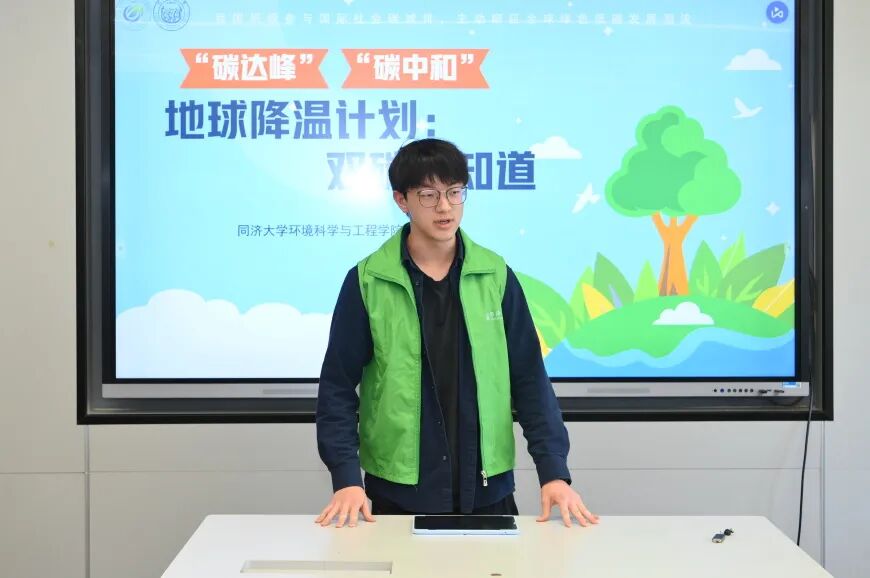 同济大学环境科学与工程学院青年志愿者邹小可为大家带来“地球降温计划-双碳全知道”科普讲座,结合生动案例对低碳科技如何改变生活进行了解读。这些极具未来感的“绿科技”让大家直呼:“原来低碳生活可以这么酷!”