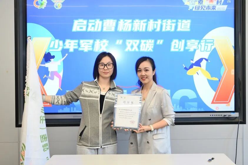 街道联合华东电力设计院、同济大学长三角可持续发展研究院,为社区(少年)军校量身定制了“双碳引领 ‘智’创未来”科技成长营板块,助力曹杨青少年践行3060国家战略。现场,街道办事处副主任、社区(少年)军校常务副校长张磊与同济大学长三角可持续发展研究院行政管理张雅灵共同启动社区(少年)军校“双碳”创享行。