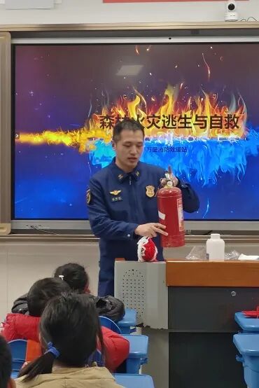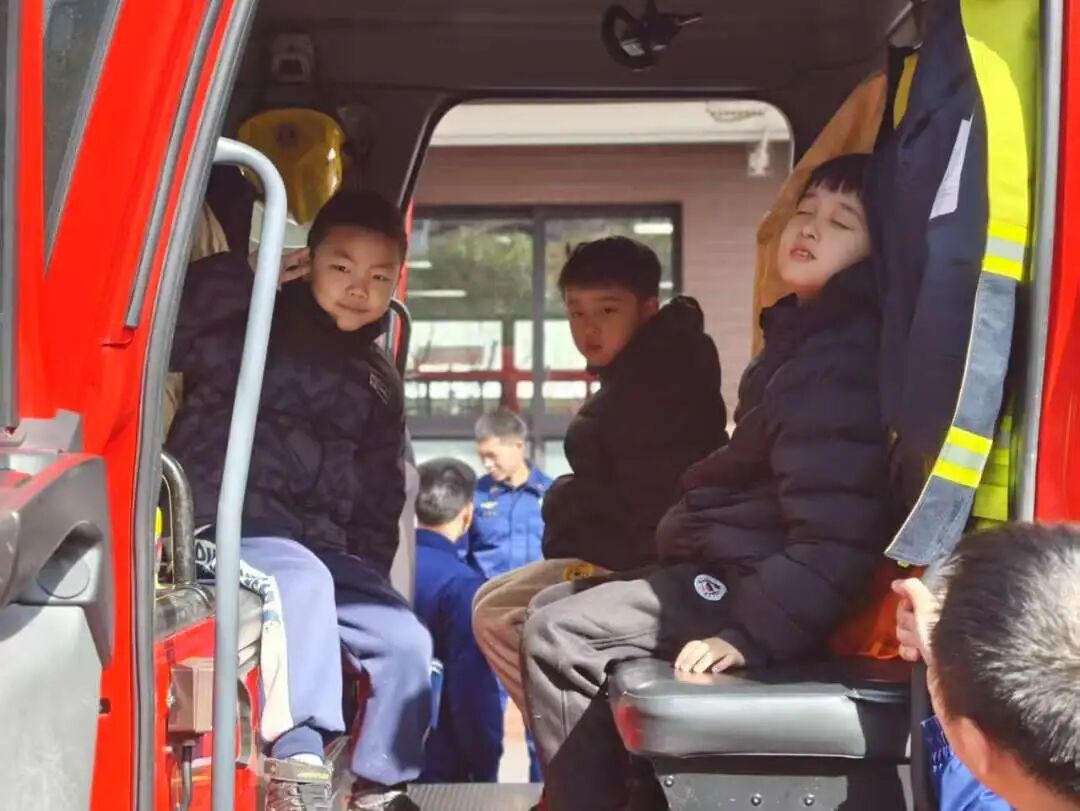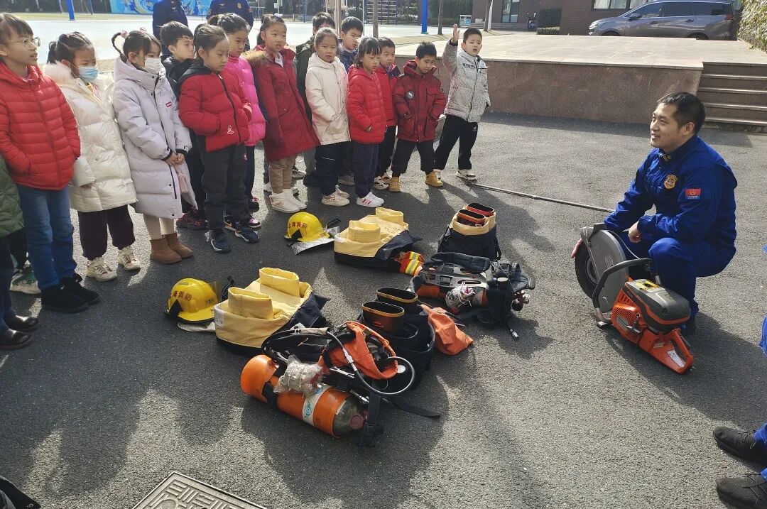 预防火灾隐患,争做消防小卫士。消防员叔叔开着消防车走进校园,细致地给孩子们讲解室内逃生安全路线,展示介绍各种消防用具,并演示了使用方法。孩子们有机会自己背上消防器械,坐上消防车,从而能够设身处地感受消防员们的辛苦,更体会到生命的珍贵。